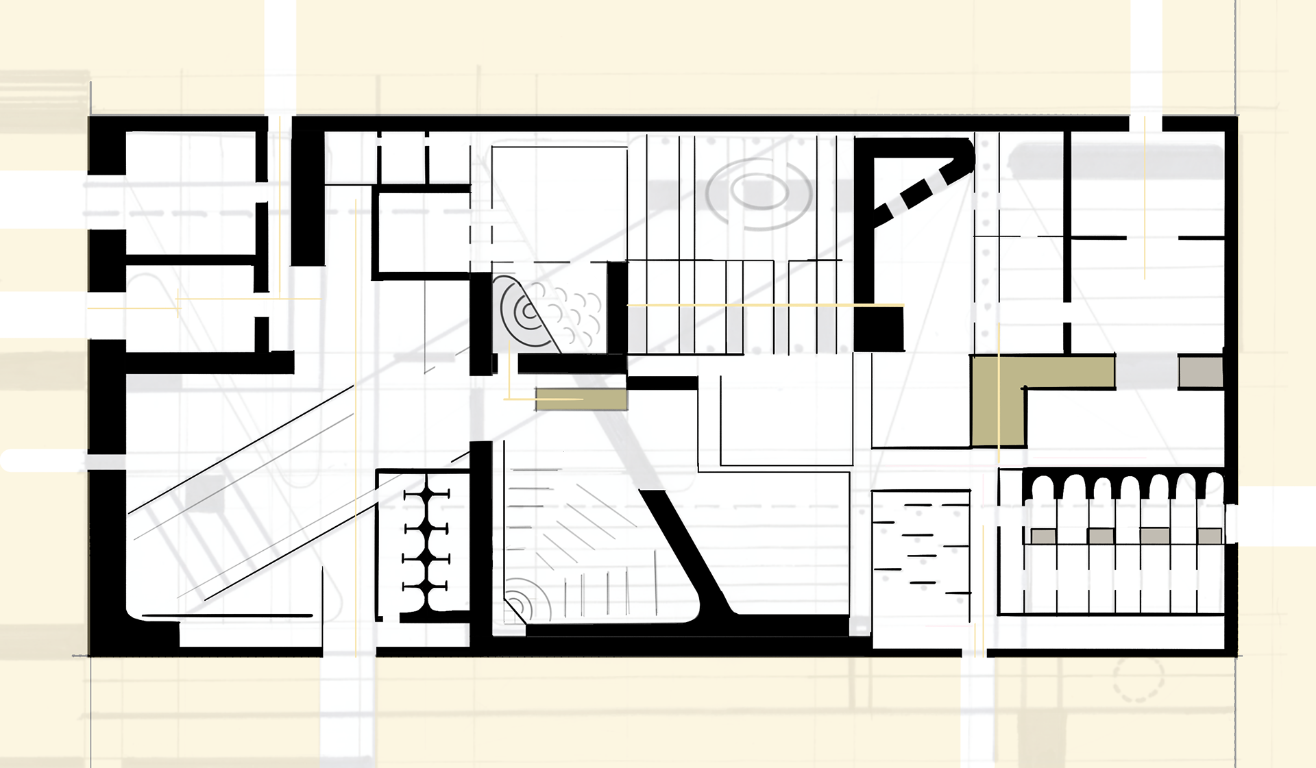 Each of these moments were represented with one corresponding plan and section (three moments, three sections, three plans).